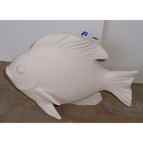 Réf. N°134-1 poisson, figurine, L 16 x l 8 x h 11,5 ; biscuit de faïence fine (céramique brute à peindre ou à émailler)