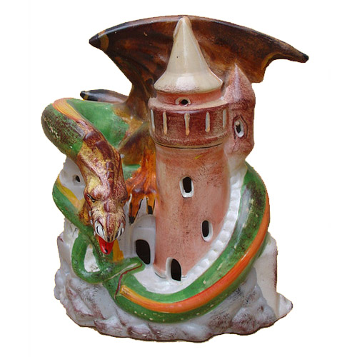 Réf. 15-006a-2 château entouré d'un dragon, figurine peinte, L 25 x h 24