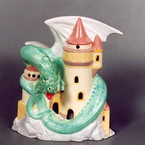 Réf. 15-006a-1 château entouré d'un dragon, figurine peinte, L 25 x h 24