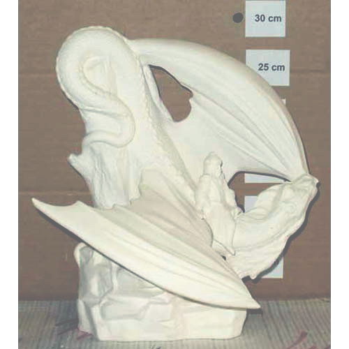 Réf. 15-014 soldat sur dragon, figurine, h 30 ; biscuit de faïence fine (céramique brute à peindre ou à émailler)