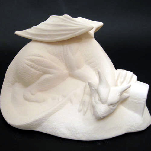 Réf. 15-022 dragon dormant, figurine, L 20 x l 15 x h 11,5 ; biscuit de faïence fine (céramique brute à peindre ou à émailler)