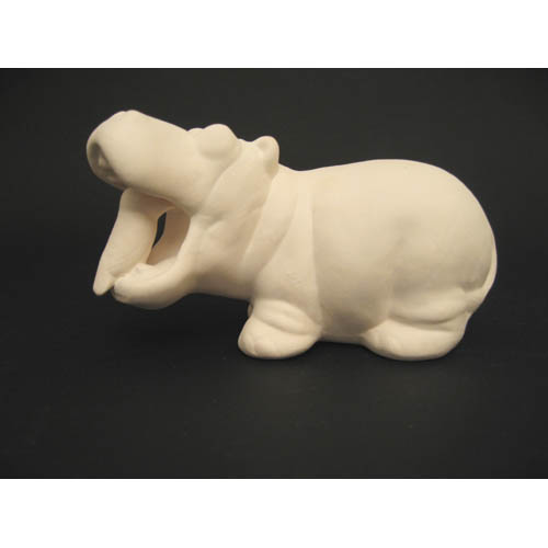 Réf. 11-037-2 hippopotame avec oiseau droit, figurine, L 13 x l 7,4 x h 8 ; biscuit de faïence fine (céramique brute à peindre ou à émailler)