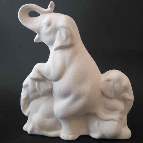 Réf. 11-058 trois éléphants, figurine, L 10,5 x l 4 x h 12 ; biscuit de faïence fine (céramique brute à peindre ou à émailler)