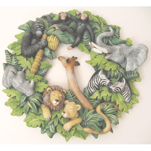 Réf. 11-064b animaux africains, couronne murale peinte, L 42 x l 39 x h 7
