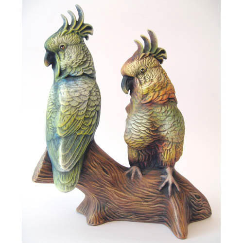 Réf. 10-040b deux perroquets, figurine peinte, L 25 x l 13 x h 32