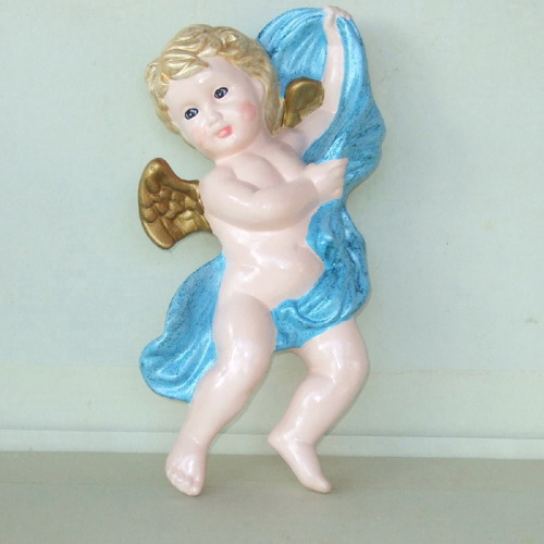 Réf. N°087amv ange avec voile, sculpture murale peinte, L 12 x l 6 x h 25