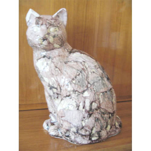 Réf. 06-008p chat assis, figurine de faïence fine craquelée, L 21,5 x l 15,5 x h 29,5