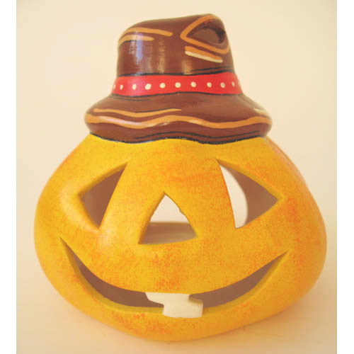 Réf. N°115 a citrouille avec chapeau, photophore peint, L 11 x l 10 x h 10,5