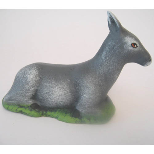 Réf. 08-014-2b-2 âne couché, figurine peinte, L 10 x l 4 x h 6,6
