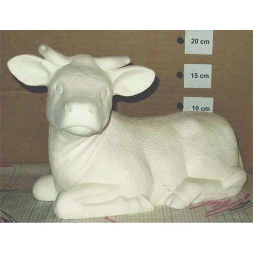 Réf. 08-006 vache / boeuf couché, figurine, L 30 x h 20 ; biscuit de faïence fine (céramique brute à peindre ou à émailler)