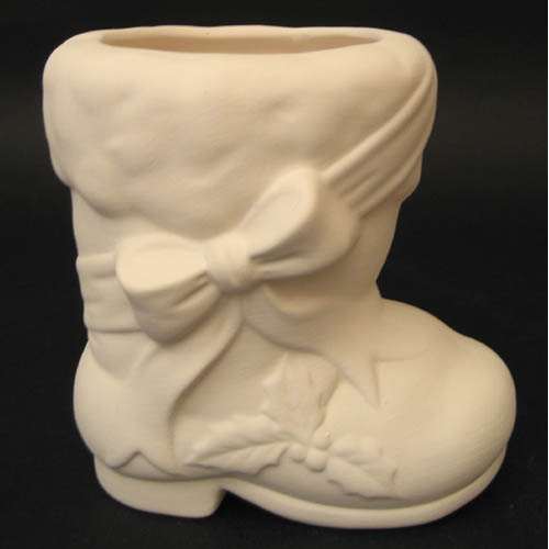 Réf. 01-127 botte avec ruban, figurine / cache-pot / porte-crayons / vase, L 12 x l 9,5 x h 12 ; biscuit de faïence fine (céramique brute à peindre ou à émailler)
