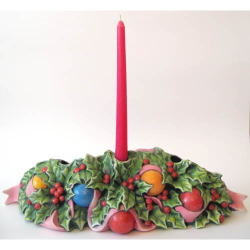 Réf. 01-130b Noël, bougeoir peint pour trois bougies, L 44 x l 18 x h 13