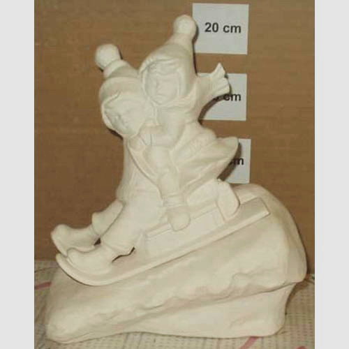 Réf. 16-137 enfants avec luge, figurine, h 20 ; biscuit de faïence fine (céramique brute à peindre ou à émailler)