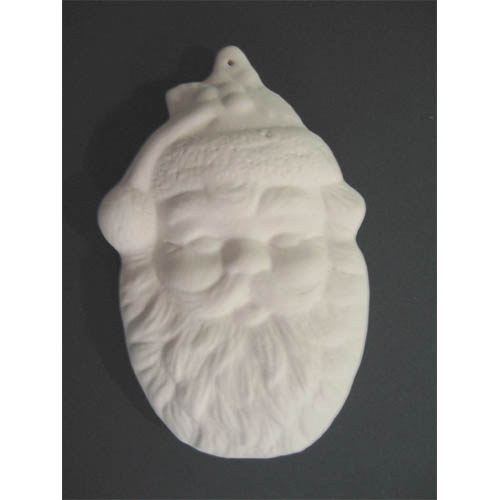 Réf. 01-023 tête de Père Noël, figurine à suspendre, L 5,6 x l 1,7 x h 8,7 ; biscuit de faïence fine (céramique brute à peindre ou à émailler)