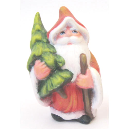 Réf. 01-039-1 Père Noël avec sapin, figurine, L 6 x l 6 x h 11 ; biscuit de faïence fine (céramique brute à peindre ou à émailler)