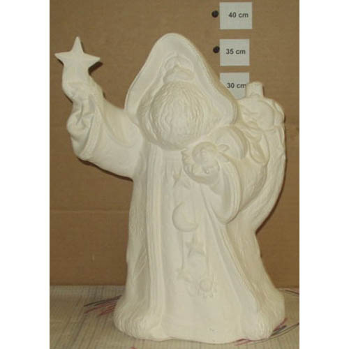 Réf. 01-094 Père Noël avec étoile, figurine, L 30 x h 38 ; biscuit de faïence fine (céramique brute à peindre ou à émailler)