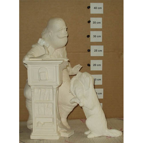 Réf. 01-096 Père Noël avec chien, figurine, 35 x 22 ; biscuit de faïence fine (céramique brute à peindre ou à émailler)