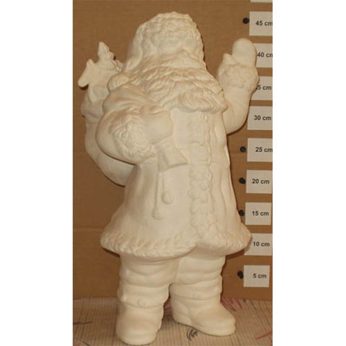 Réf. 01-100 Père Noël avec sa hotte sur l'épaule, figurine, h 46 ; biscuit de faïence fine (céramique brute à peindre ou à émailler)