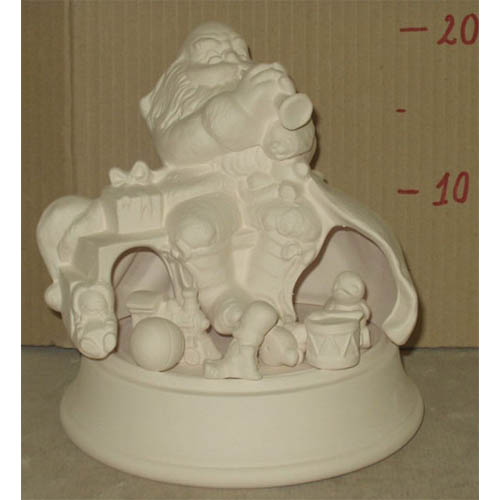 Réf. 01-110 Père Noël avec cadeaux, boîte, h 20 ; biscuit de faïence fine (céramique brute à peindre ou à émailler)