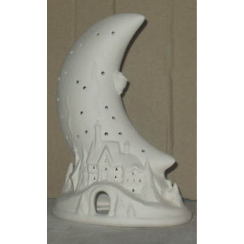 Réf. 01-116 Lune avec Père Noël, applique pour veilleuse / photophore (dos), L 15 x l 10 x h 22 ; biscuit de faïence fine (céramique brute à peindre ou à émailler)