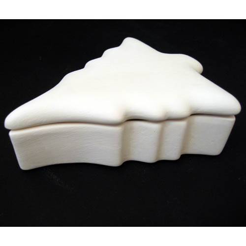 Réf. 01-041 sapin, boîte, L 12,5 x l 10,3 x h 3,5 ; biscuit de faïence fine (céramique brute à peindre ou à émailler)