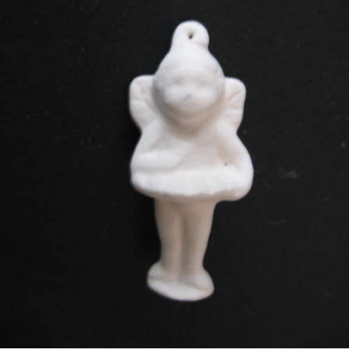 Réf. 01-044-6 elfe, mini figurine à suspendre, L 1,8 x l 1,8 x h 4 ; biscuit de faïence fine (céramique brute à peindre ou à émailler)
