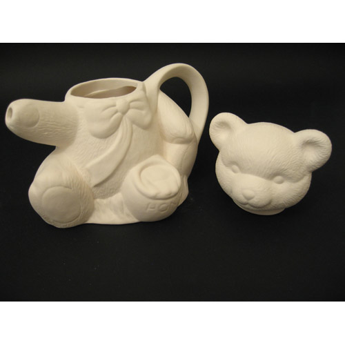 Réf. 04-032 ourson, théière ouverte, L 20 x l 12 x h 18 ; biscuit de faïence fine (céramique brute à peindre ou à émailler)