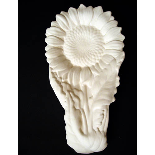Réf. 12-010 tournesol, vide-poche / porte cuillère / sculpture murale (accrochée), L 20,5 x l 11 x h 2 ; biscuit de faïence fine (céramique brute à peindre ou à émailler)