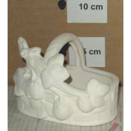 Réf. 13-042 corbeille décorée de fruits, figurine, h 7 ; biscuit de faïence fine (céramique brute à peindre ou à émailler)