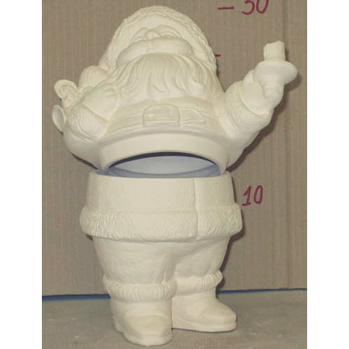 Réf. 01-101 Père Noël avec bougeoir, figurine / bonbonnière / boîte, L 20,5 x l 14 x h 30 ; biscuit de faïence fine (céramique brute à peindre ou à émailler)