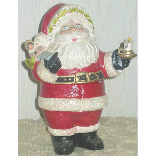 Réf. 01-101af Père Noël avec bougeoir, figurine / bonbonnière / boîte peinte, L 20,5 x l 14 x h 30