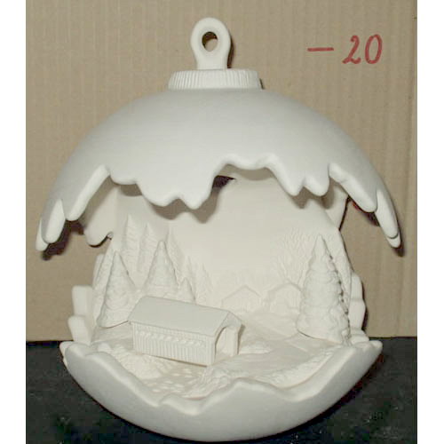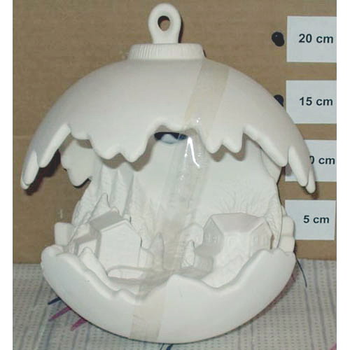 Réf. 01-009 sapins, semi sphère à suspendre, groupe de figurines, L 21 x l 14 x h 26 ; biscuits de faïence fine (céramique brute à peindre ou à émailler)
