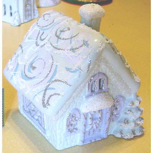 Réf. 01-104af-2 maisonnette décorée, figurine / photophore peint, L 12,5 x l 12 x h 13,5