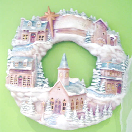 Réf. 01-001b ville en hiver, couronne murale peinte, diam. 40