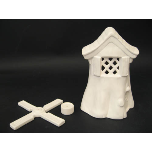 Réf. 13-087 moulin, figurine, L 12,5 x l 13 x h 19 ; biscuits de faïence fine (céramique brute à peindre ou à émailler)
