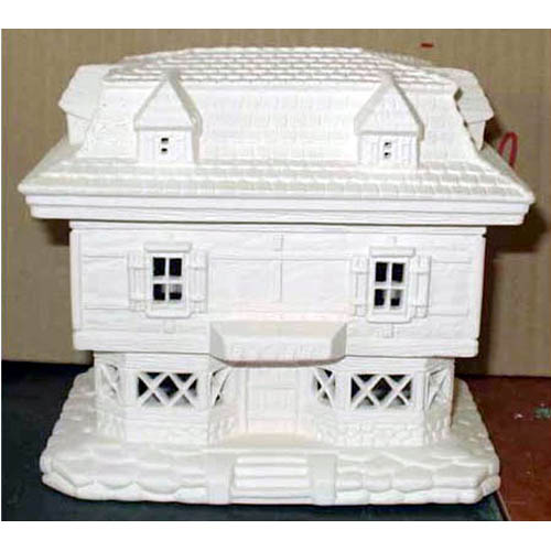 Réf. 13-155 chalet / maison, figurine / photophore, L 17 x l 10 x h 15 ; biscuits de faïence fine (céramique brute à peindre ou à émailler)