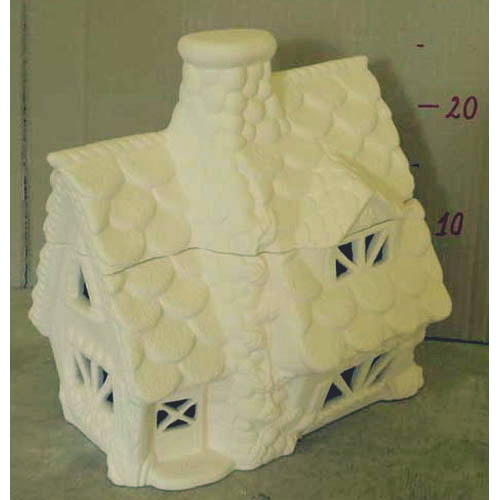 Réf. 13-116 maison de forêt, boîte, h 28 ; biscuit de faïence fine (céramique brute à peindre ou à émailler)