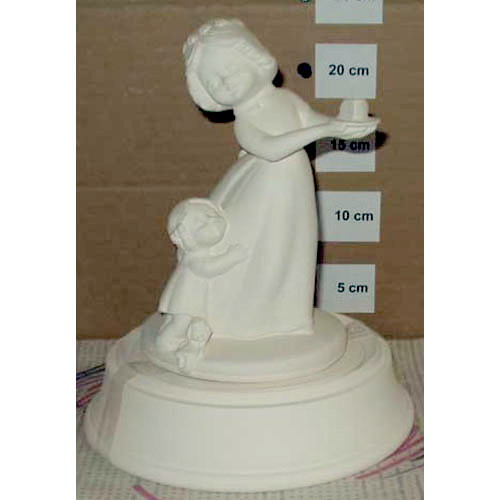 Réf. 16-069 fille avec enfant, boîte, h 23 ; biscuit de faïence fine (céramique brute à peindre ou à émailler)