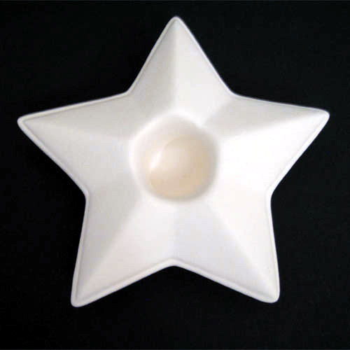 Réf. 13-007 étoile, bougeoir, Ø 10 x h 3,5 ; biscuit de faïence fine (céramique brute à peindre ou à émailler)