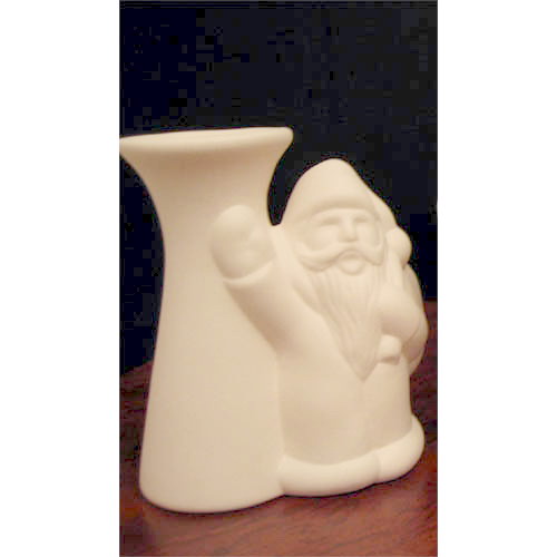 Réf. N°132 Père Noël, vase à fleurs séchées / bougeoir, L 7,5 x l 5 x h 8,5 ; biscuit de faïence fine (céramique brute à peindre ou à émailler)