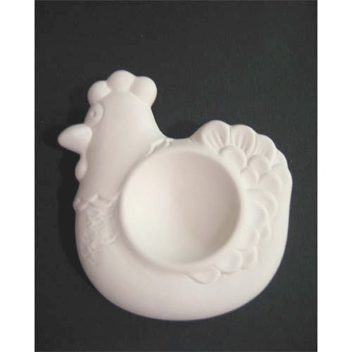 Réf. N°207 poule, coquetier / bougeoir, L 10,2 x l 8,4 x h 2,3 ; biscuit de faïence fine (céramique brute à peindre ou à émailler)