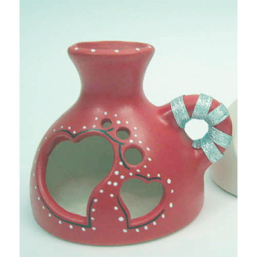 Réf. N°171a coeur, vase à fleurs séchées / bougeoir peint, L 8 x l 4 x h 10