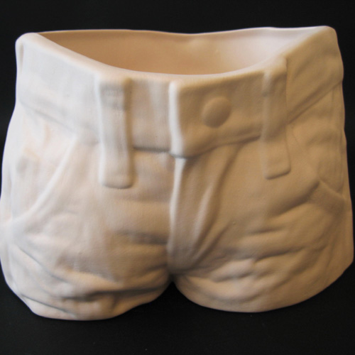Réf. 13-067 jeans d'homme, figurine / cache-pot / L 22 x l 17 x h 15 ; biscuit de faïence fine (céramique brute à peindre ou à émailler)