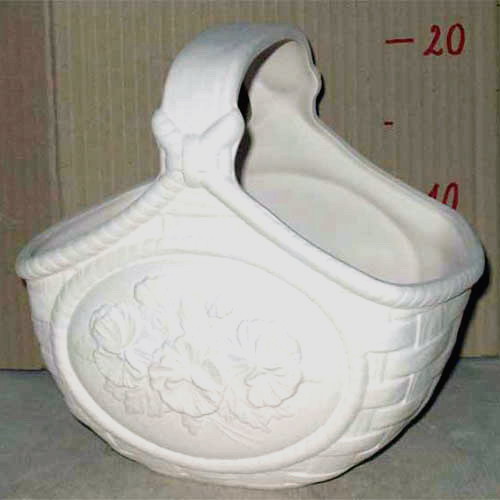 Réf. 13-113 corbeille décorée de violettes, figurine / cache-pot, h 21 ; biscuit de faïence fine (céramique brute à peindre ou à émailler)