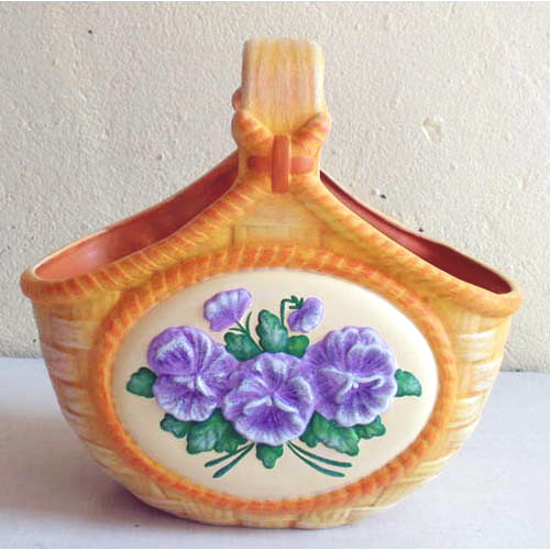 Réf. 13-113b corbeille décorée de violettes, figurine / cache-pot peint, h 21