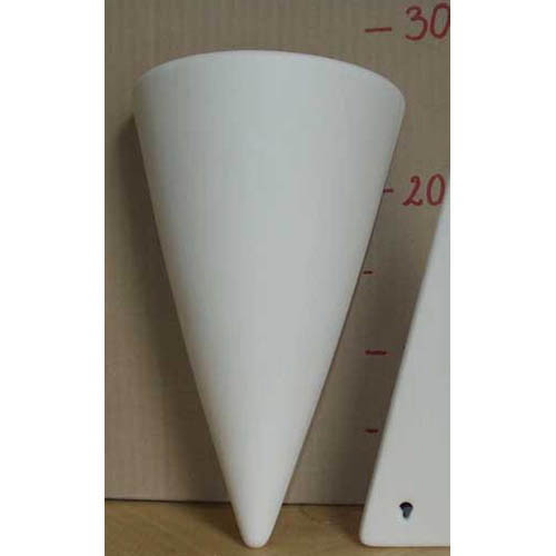 Réf. 13-140 semi cône, cache-pot mural/ vase mural à fleurs artificielles, L 12,5 x l 6 x h 23 ; biscuit de faïence fine (céramique brute à peindre ou à émailler)
