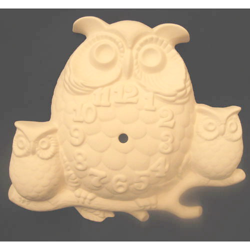 Réf. 10-006 hiboux, cadran de pendule, L 33 ; biscuit de faïence fine (céramique brute à peindre ou à émailler)