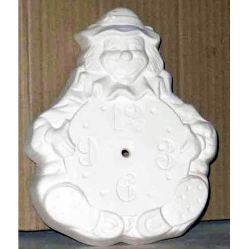 Réf. 16-011 clown, cadran de pendule, L 17 x h 21 ; biscuit de faïence fine (céramique brute à peindre ou à émailler)