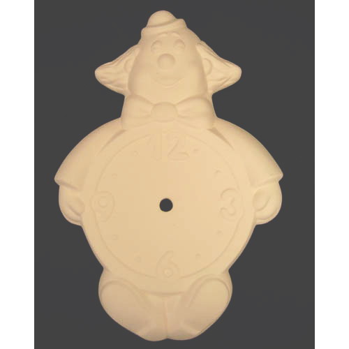 Réf. N°162 clown, cadran de pendule, L 15,5 x l 3 x h 23 ; biscuit de faïence fine (céramique brute à peindre ou à émailler)