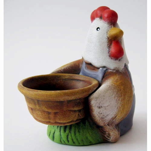 Réf. N°140b poule avec panier, coquetier peint, L 9,5 x l 6,3 x h 9